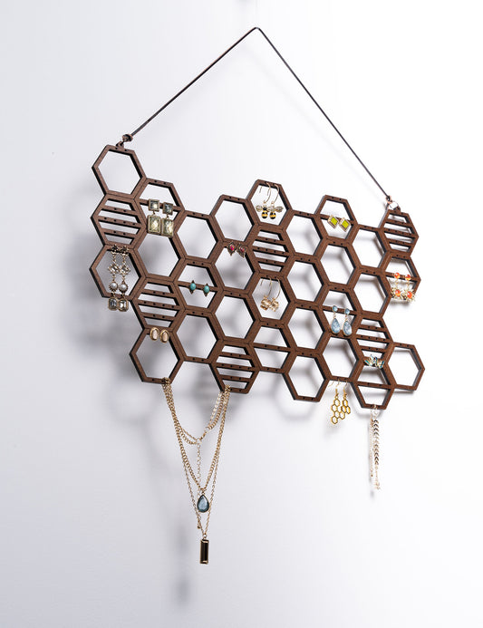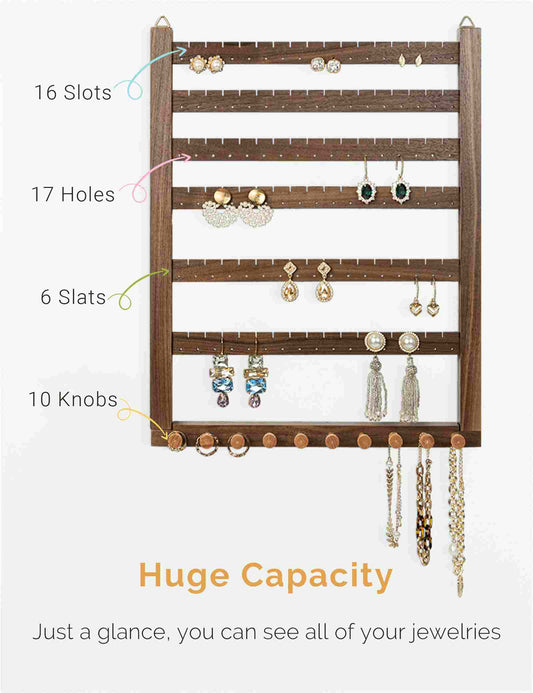 Easy Assemble Wood Earring Wall Holder (Walnut)