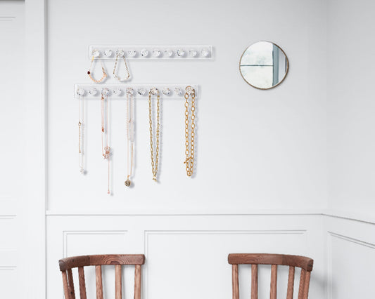 I love jewelry and needed a way to store and easily access my necklaces. The inside of my closet door seemed to be a prefect place ... and it is! The necklace holders were easy to install, look great, function well and I even have room for more jewelry! Thank you!