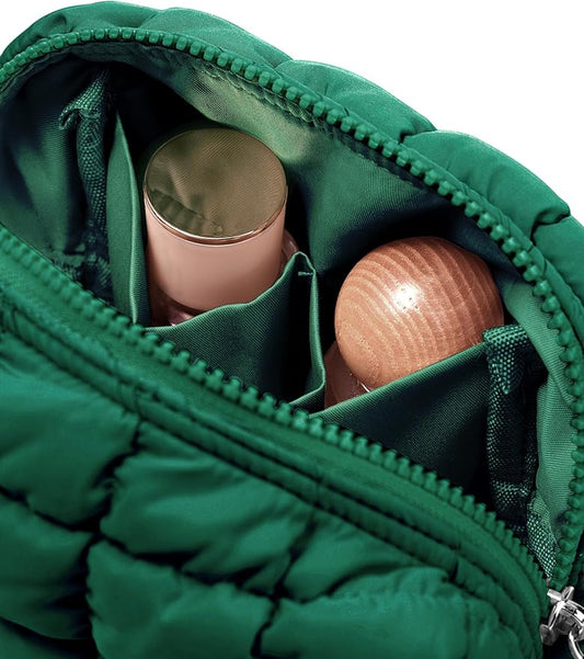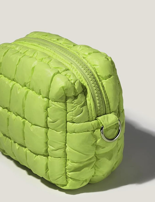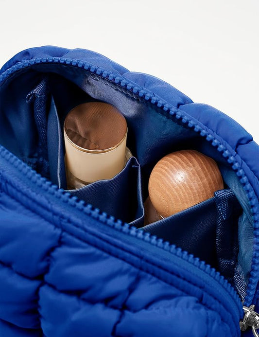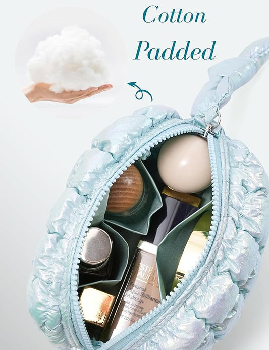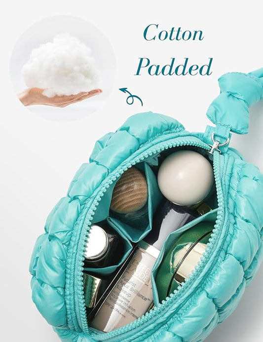 Turquoise Quilted Makeup Bag – Travel Cosmetic Pouch for Purse & Toiletries