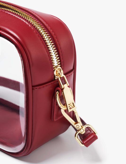 Made of PVC and PU leather. It’s durable, water-resistant, compact and lightweight. It offers an ample space for your smartphone, small wallet, cosmetics, and other essentials. The transparent design allows for quick security checks at venues that adhere to the Clear Bag Policy. Comes with a removable and adjustable crossbody strap, ranging from 43.7" to 49.8".