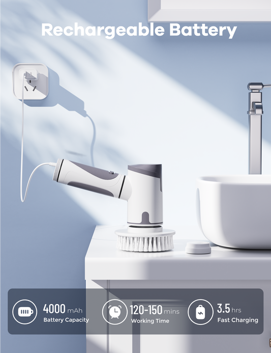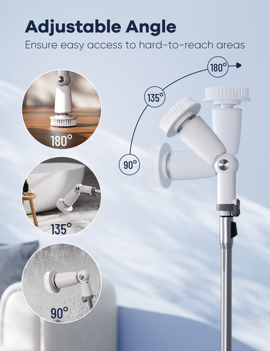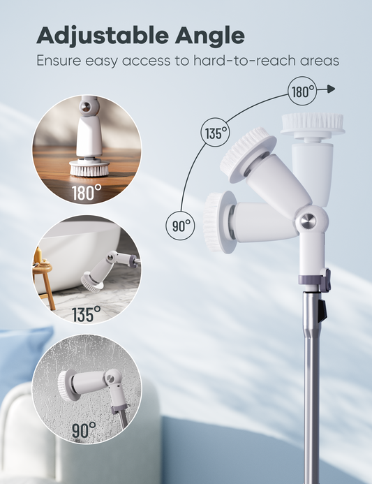 Cordless Electric Spin Scrubber with Long Handle (White&grey)