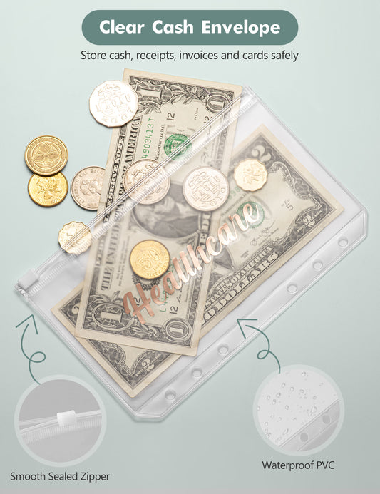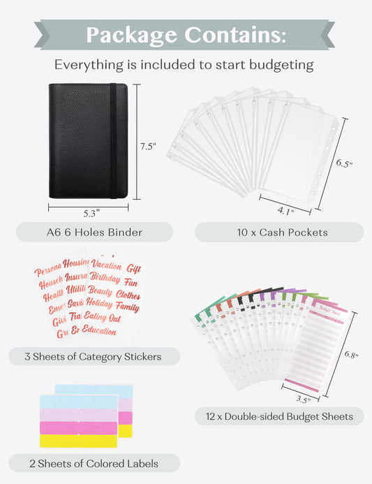 A6 Budget Binder for Money Saving Binder 10 Cash Pockets (Black)