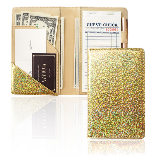4.7x7.5" Holographic Glitter Gold Server Book Wallet