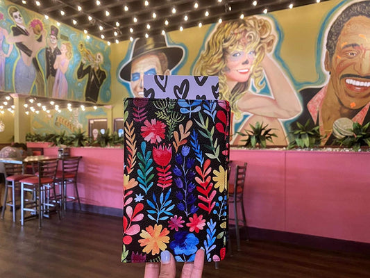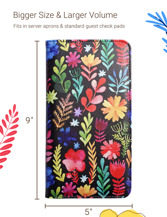 4.7x7.5" Classic Black Flower Server Book Wallet