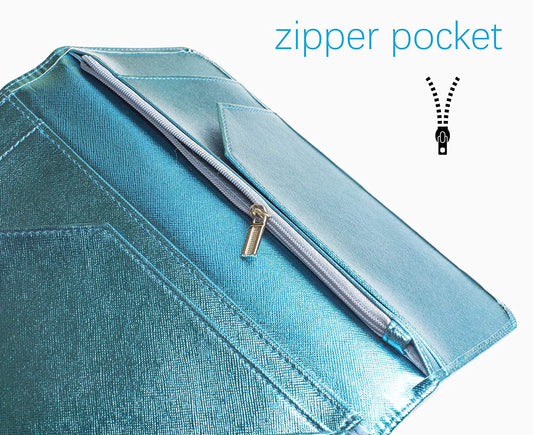 5x9'' Mermaid Blue Server Book with Zipper&Magnetic